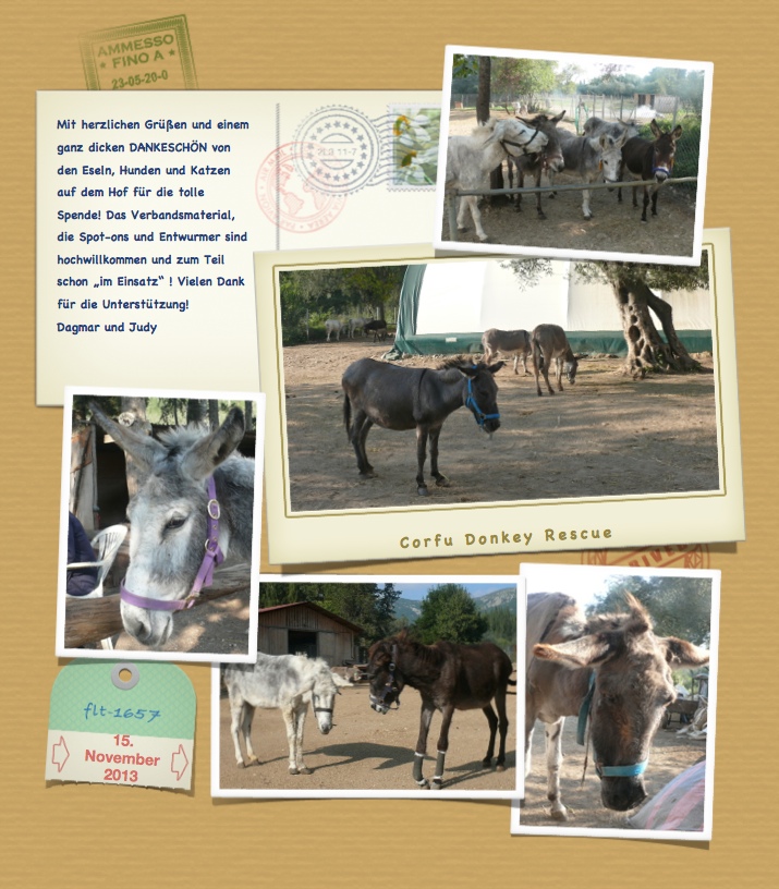 Das Dankeschön von "Corfu Donkey Rescue" gilt dem Tierschutzverein Kelsterbach & der Tierärztin Sabrina Rehberger! Wir freuen uns riesig, dass wir mit Medikamenten und Verbandsmaterial ein wenig helfen konnten ...