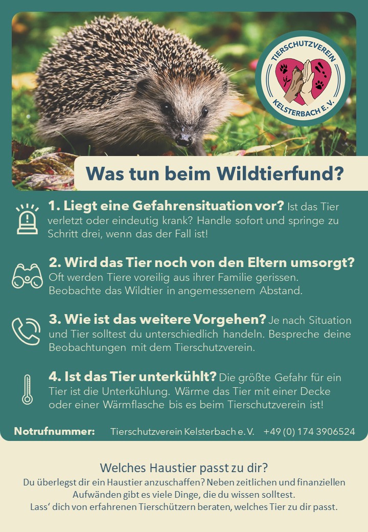Notfall gefunden Sie haben ein vermutlich hilfsbedürftiges Wildtier gefunden? Dann gehen Sie bitte wie folgt vor: