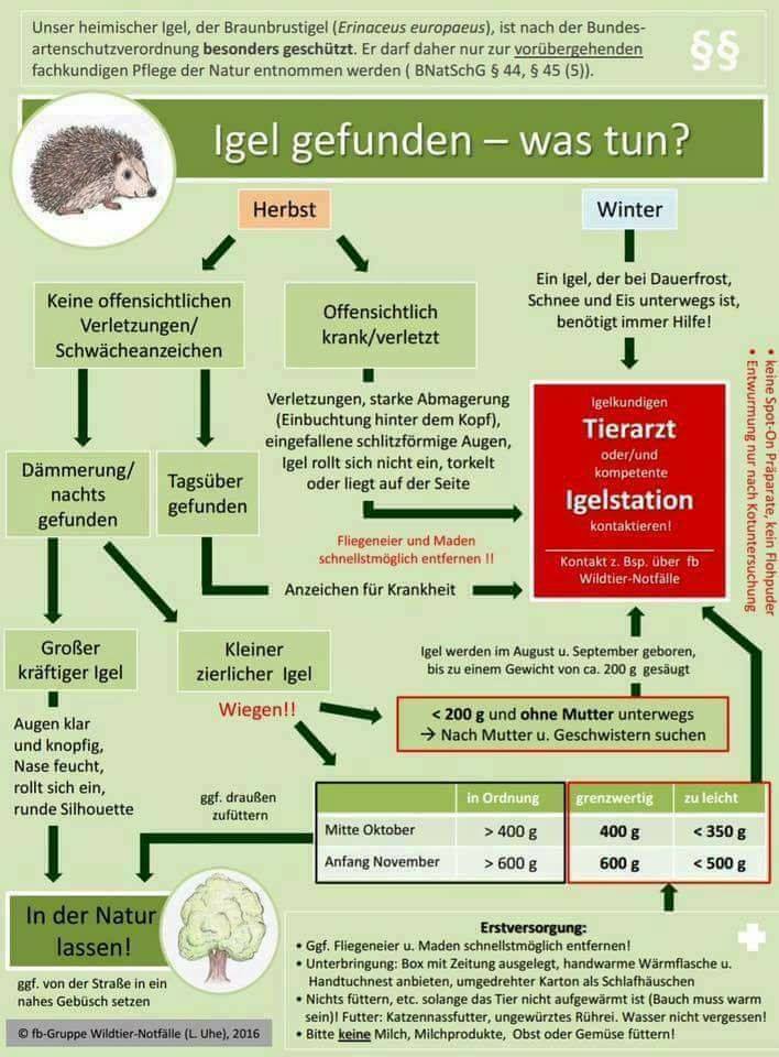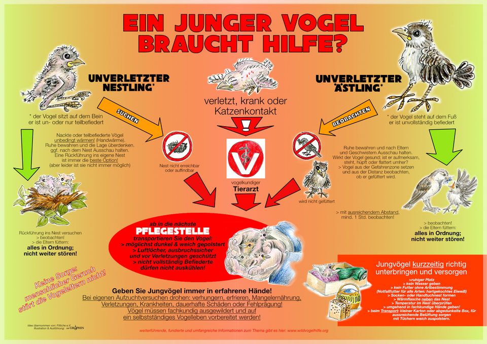 Weitere wichtige Hinweise zur "Notfall-Hilfe" findet ihr auf der Seite der "Interessensgemeinschaft deutscher Wildtierpfleger" (Link: https://www.ighw.org/notfall-hilfe/ ) |