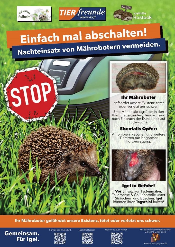 Igel und andere Tiere, Exoten sterben durch Mähroboter !